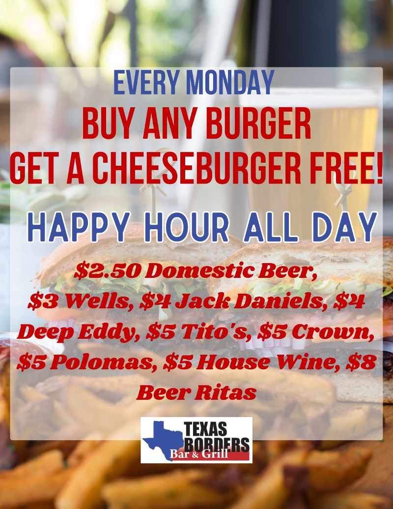 If you're looking for a tasteful bar and grill in Richmond, TX, to grab burgers for lunch or dinner, then look no further than Texas Borders Bar & Grill 1093. Here, we have a family restaurant plus a bar with live music on the weekends to accommodate everyone's preferences. Our happy hours, drink specials, and daily specials will help to get you the best deal on beers, mixed drinks, and wines. Stop in this week with the family to let our friendly staff serve you your fill of delicious American and Tex-Mex food.